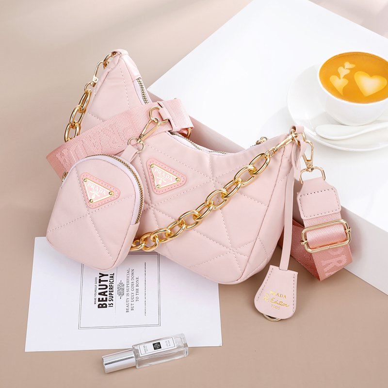 大人気 プラダ ショルダーバッグ ピンク ブラック PRADA Shoulder Bag Pink Black 番号PR004