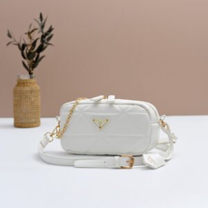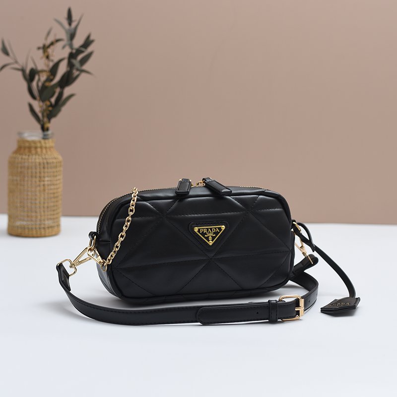 新品 大人気 Prada プラダ ショルダーバッグ PUレザー バッグ スマホ収納可 ブラック ホワイト Prada Shoulder Bag Pink Black 番号DBPR007